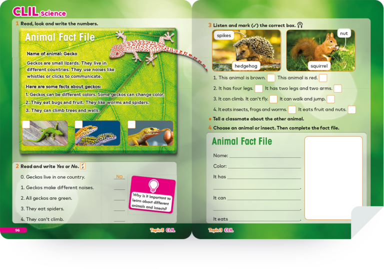 With the two-page CLIL section, students can apply prior knowledge in a different content area, and sharpen their critical thinking skills.