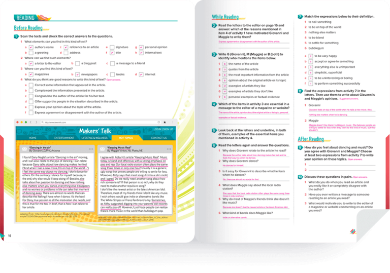 Listening and Speaking: Includes comprehension and production activities, plus a useful pronunciation section.